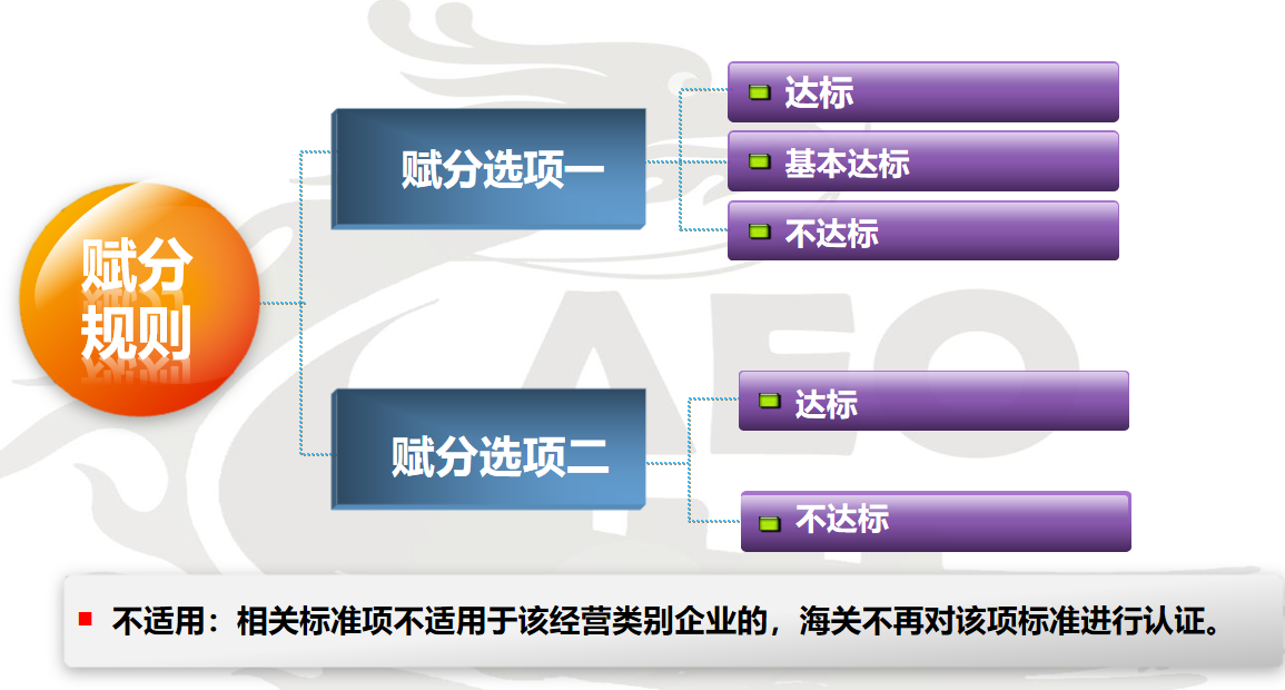 赋分规则仍分为两类,对于“内部控制”和“贸易安全”两类标准中分三种情况:达标、基本达标、不达标。